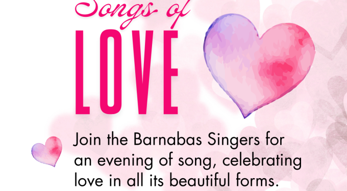 With music from the late 1500’s right up to the present, the Barnabas Singers will entertain you with songs on the theme of Love, and you’ll be able to join the choir afterwards for a light supper, which is always a nice way to finish an evening of music.